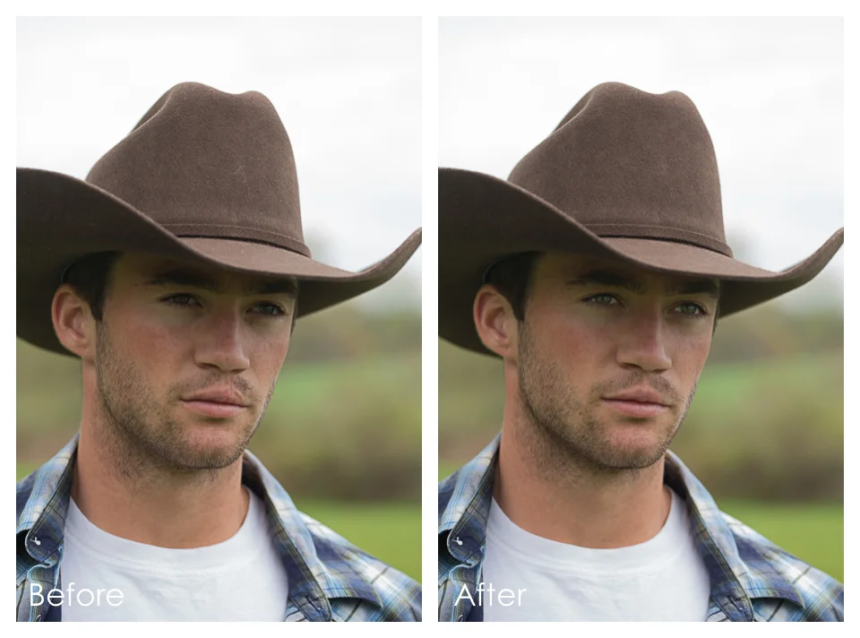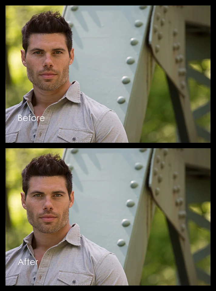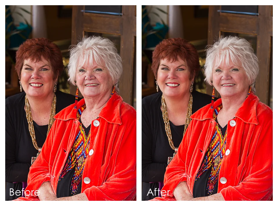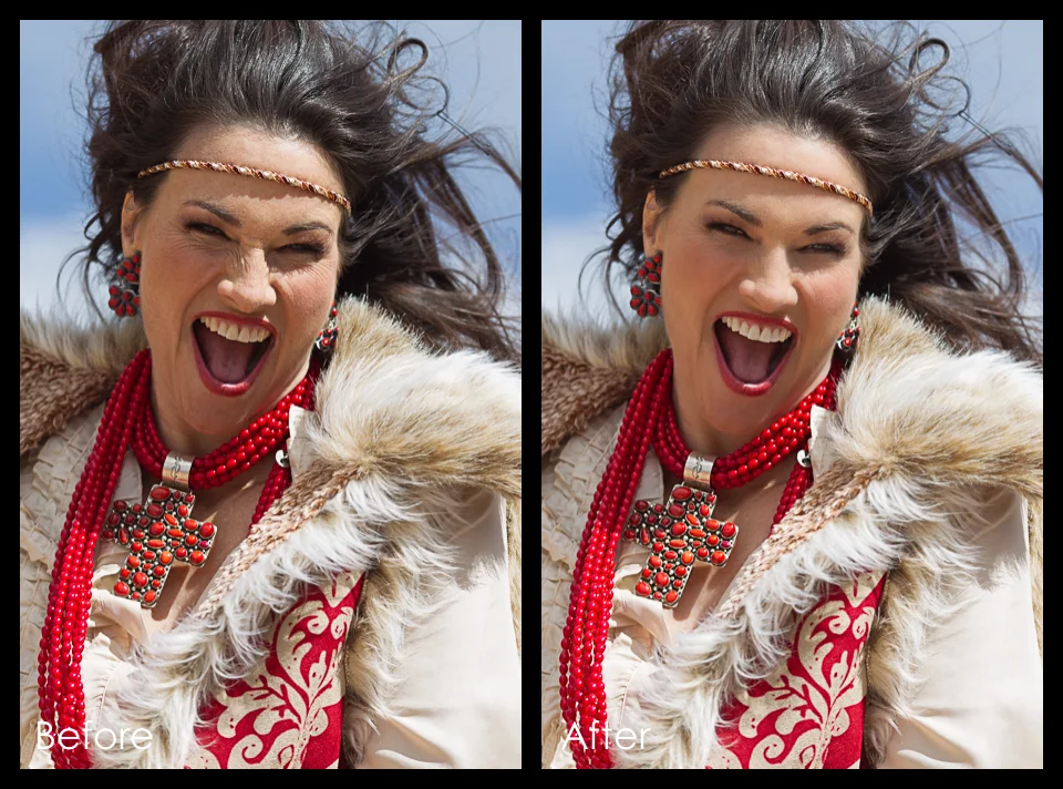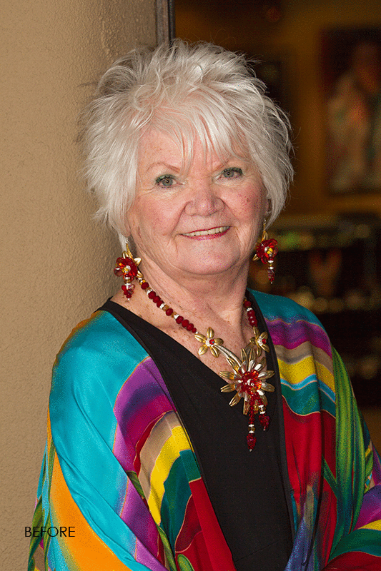 Digital photography captures so much more detail than analogy film. Utilizing Photoshop CS, I soften pores, clean up blemishes, remove unwanted hair, even out skin tones, brighten eyes, clean up backgrounds and reduce the 10 pounds the camera adds. Occasionally adding a finger, opening eyes, shrinking hats or softening wrinkles. Working to enhance the image, while keeping it natural, unless otherwise requested.